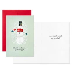 Hallmark Cardinal Perched On Snowman Packaged Christmas Cards, Set Of 5